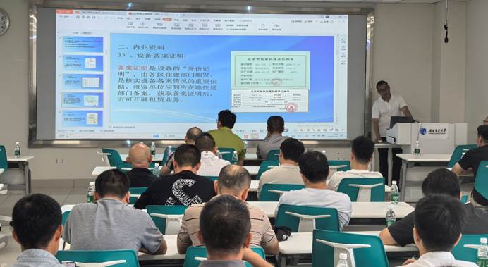 中铁建设集团有限公司运营管理部副总经理,北京市危大工程专家库安全管理专家,中国工程机械协会专家,北京市建筑机械行业协会专家,英国威廉集团官网96届校友陈吉申,以“施工现场设备管理”为题进行了分享,从设备管理依据、设备资料管理、起重机械管理、设备供应商管理、设备检查问题实例五个方面进行了深入细致的分析解读,为参训人员带来了一堂内容充实、实用性强的施工现场设备安全管理课。最后他指出施工现场设备管理工作任重道远,我们必须坚定信心,查漏补缺,完善体系,夯实基础,不懈创新。