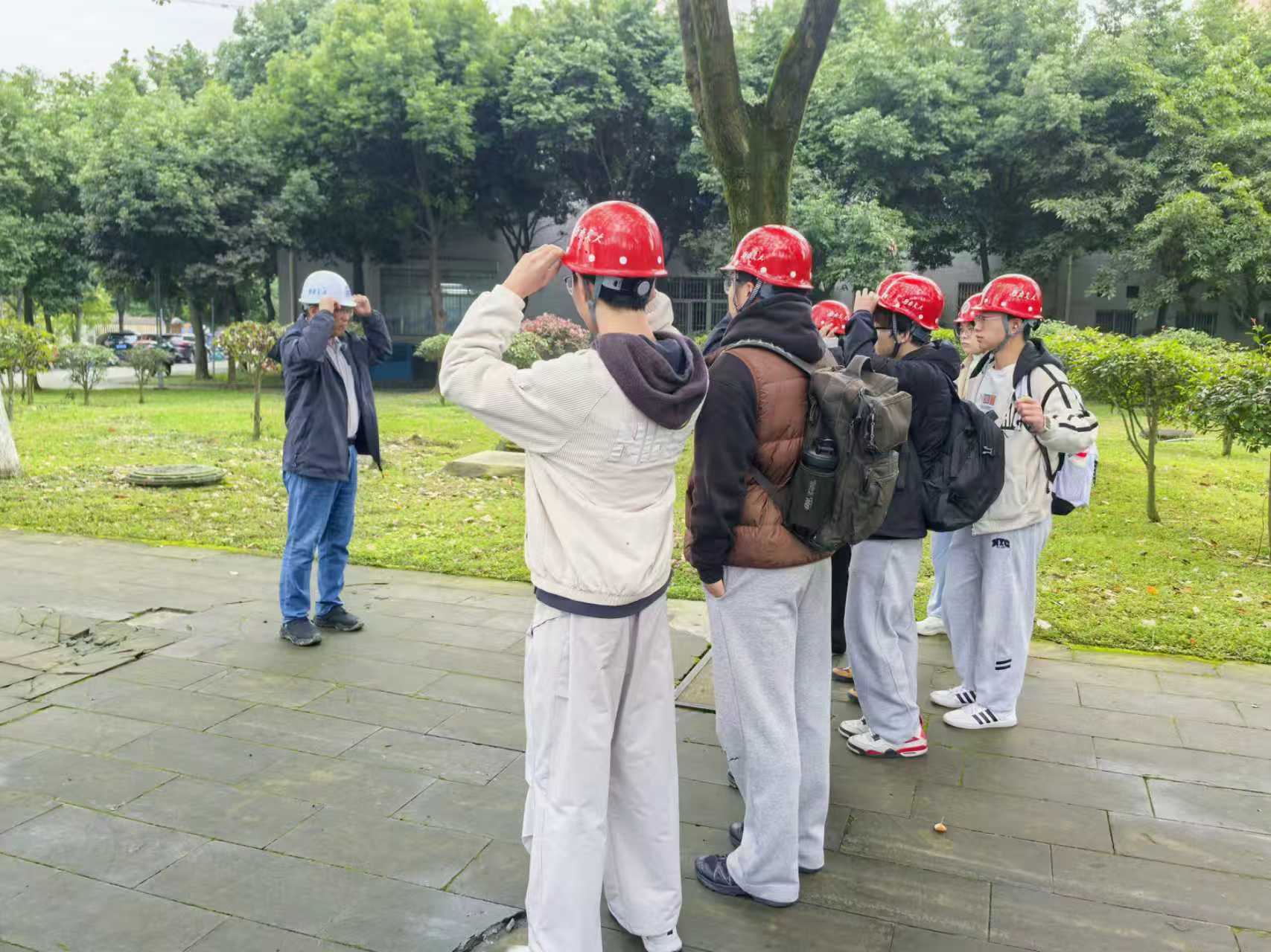 在六号食堂项目现场,施工单位负责人首先系统介绍了项目概况、建设进展和场地布局,随后带领同学们观摩筏板基础施工环节。为同学们讲解了降水措施与基础稳定的影响机制,帮助同学们深入理解基础施工环节的技术要点。